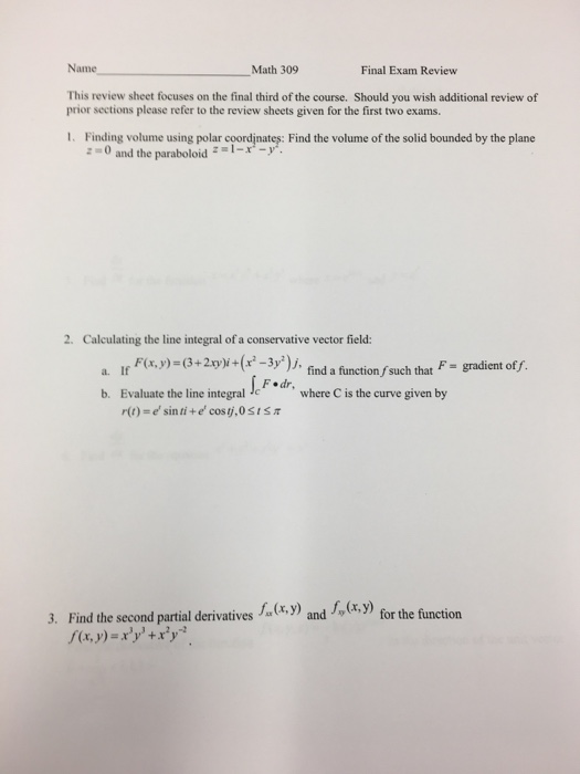Name Math 309 Final Exam Review This Review Sheet Chegg Com